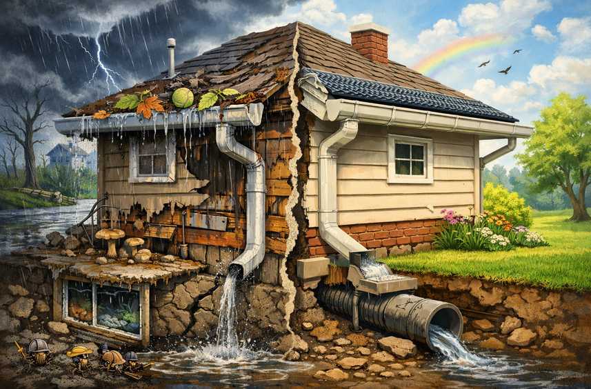 Water pooling near the base of a house is like a long-term guest who refuses to leave. It lingers, seeps, and gradually finds ways inside. Basements and crawl spaces are particularly vulnerable, turning what should be dry storage into a humid environment that encourages mold and rot.